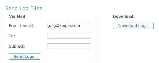 ● Via Mail: Send the log files to a specific recipient via email. Enter the From (email), To and Subject fields and click Send Logs.