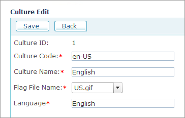 ● Culture Name: The name of the Culture that will be displayed to the store administrator. For example, English-United States.
