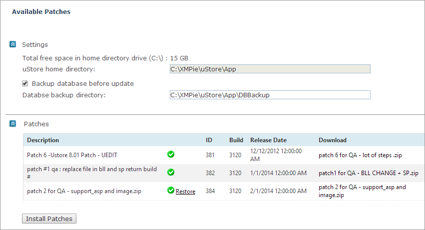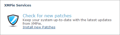 All uStore patches that are relevant for your uStore version are located in the XMPie Services section. At any point in time you can check whether new updates are available, and install the new patches to keep your system up-to-date.