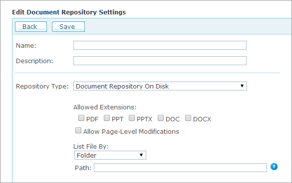 Once you have set up your Document Repository, you can enable it for use by a specific Upload Product. For more details, see Setting Up Upload Products.