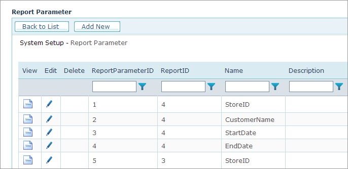 ● Report ID: The ID of the Report that will use this parameter. A Report Parameter is defined per Report. If you want other Reports to use this parameter, you should duplicate the Report Parameter definitions for each Report ID.