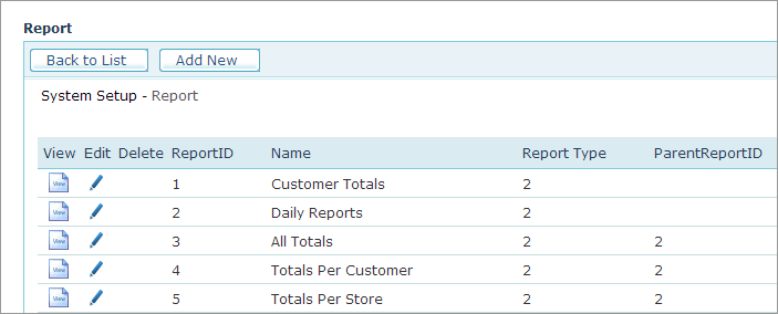 ● Parent Report ID: Reports may be aggregated under a master report section. To do so, create a dummy report as a master report section, and for the reports under it, assign the Parent Report ID to the ID of the master report section.