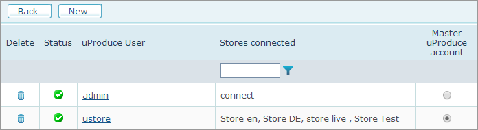 In the uProduce Connectivity area you can set up connections to uProduce users. This area also servers as a central location for updating uProduce credentials for all stores associated with a specific uProduce user.