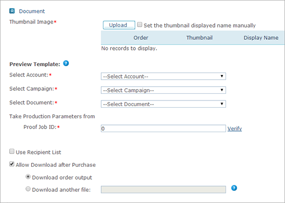 5. Select the Allow Download after Purchase checkbox to enable the customer to download output files, such as generated PDF files.