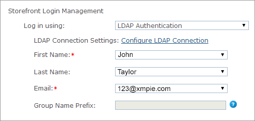 1. Under Storefront Login Management, in the Log in using list, select LDAP Authentication.