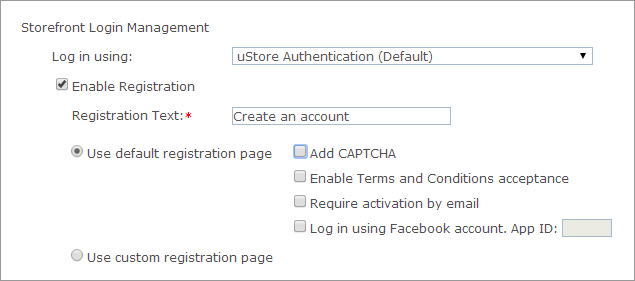 3. If you want to use uStore's default registration page, select Use default registration page and then continue with the following: